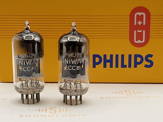 Philips ECC81 12AT7 45° Angled D-Getter Matched Pair - Copenhagen 1957 (∆7 TkB)