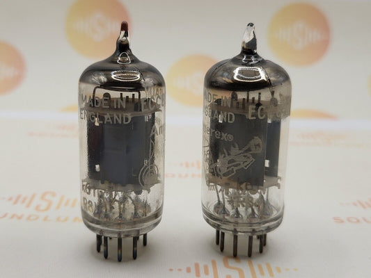 Mullard ECC82 Colored Tip Long Plates Matched Pair-Bugle Boy Label - Mitcham '58