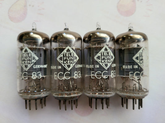 Telefunken ECC83 12AX7 Ribbed Plates Matched Quad - Berlin 1957 - Same Code - NOS
