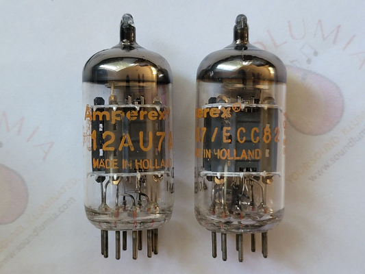 Amperex 12AU7 ECC82 Tubes Matched Pair - Orange Globe - Holland 1960 - Extra Rare - NOS