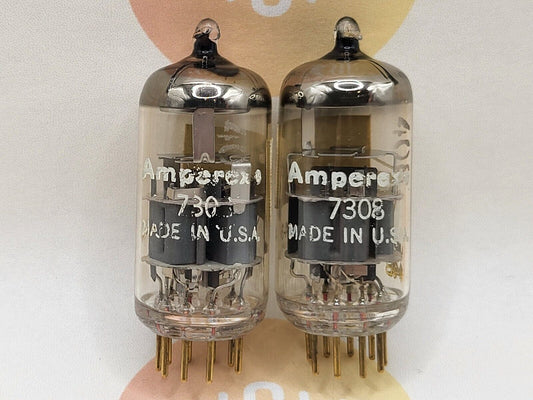Amperex PQ 7308 E188CC Weißer Aufdruck, gealtert, ausgewähltes passendes Paar, USA '64, gleicher Code