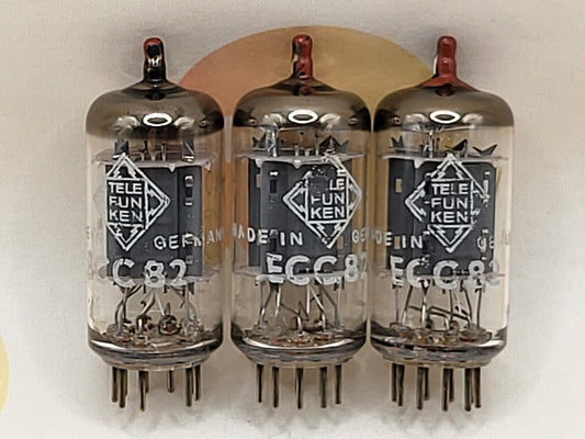 Telefunken ECC82 Rippenplatten Red Tip Matched Trio - ◇ Basis - Berlin '61 - NOS