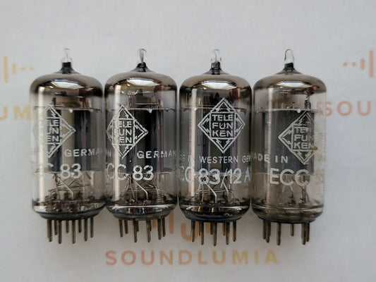 Telefunken ECC83 Lange glatte Platten, Matched Quad ◇ Base - Berlin '62/'64 - NOS