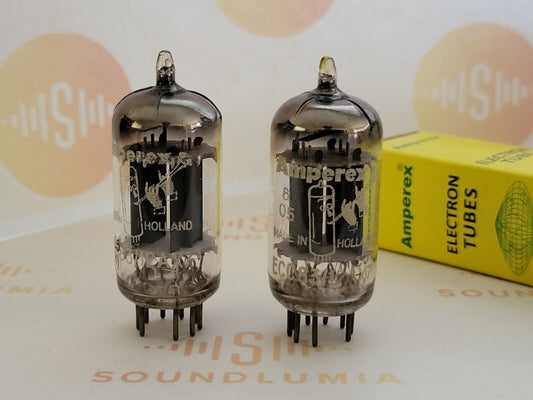 Amperex ECC83 Lange Platten Folie D Getter passendes Paar - Holland '57 mC5 ⊿7J