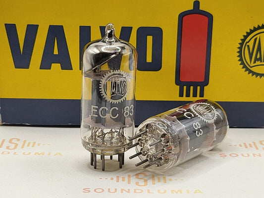 Valvo ECC83 Lange Platten passendes Paar 45° abgewinkelter Getter - Hamburg '59 mC2 - Stark
