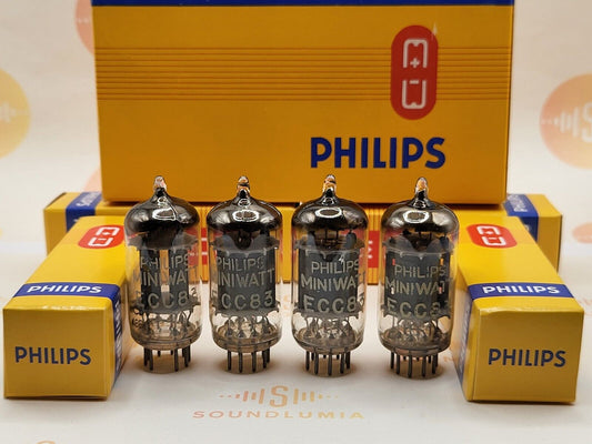 Philips ECC83 12AX7 Matched Quad - Kurze Platten - Holland 1963 I65 - NOS