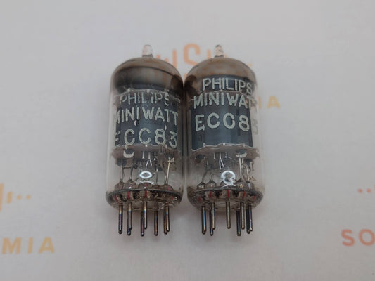 Valvo ECC83 Long Plates 30° O-getter Matched Pair -Hamburg '58 mC1 - Near NOS