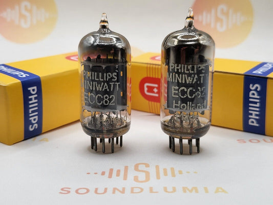 Philips ECC82 12AU7 Lange Platten 45° Folie D Getter Matched Pair - Heerlen, NL k6P