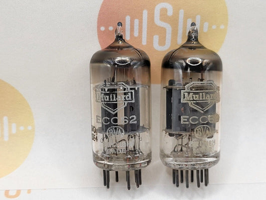 2x Mullard ECC82 12AU7 Kurze Platten Schild Logo BVA - Mitcham '60 Gf0 - Gleicher Code