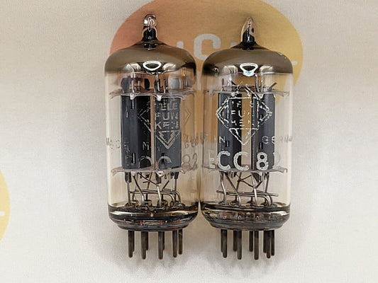 Telefunken ECC82 Matched Pair 17mm Smooth Plates ◇ Unten - Berlin 1962 - NOS