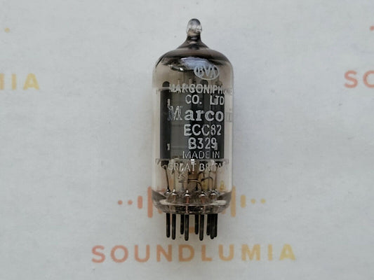 1x Mullard B329 (ECC82+) 17 mm lange Platten - Marconiphone Label - Mitcham 1959