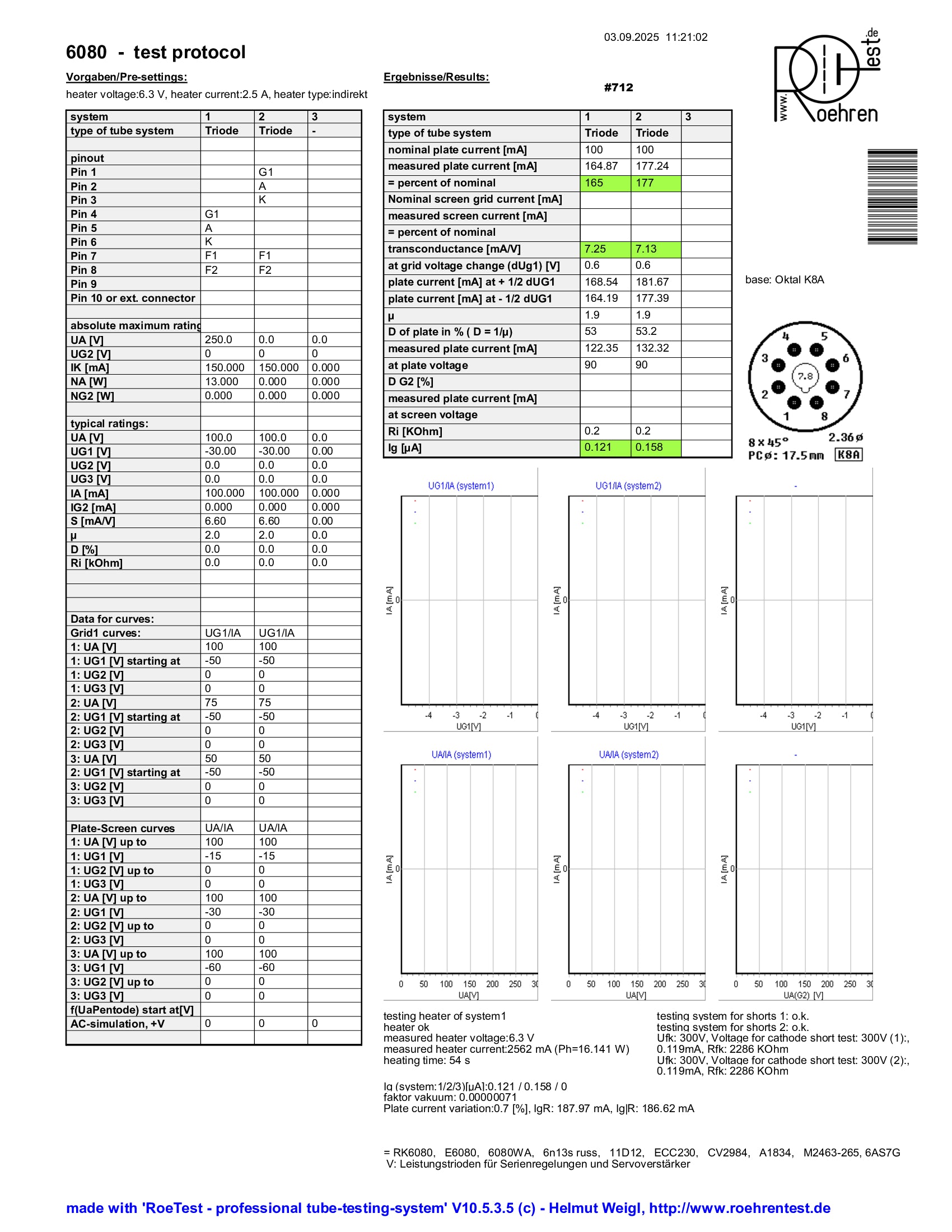 Der Nennleitwert (nominal) des Mercury 2000 für neue 6080-Röhren beträgt 7.000 . Die Testergebnisse sind auch auf den Bildern zu sehen. Falls Sie sich fragen, was all diese Zahlen für Ihr Klangerlebnis bedeuten, ist es eigentlich ganz einfach: Der Leitwert steht in direktem Verhältnis zur Fähigkeit einer Röhre, den Klang zu verstärken. Je höher die Zahlen, desto stärker.