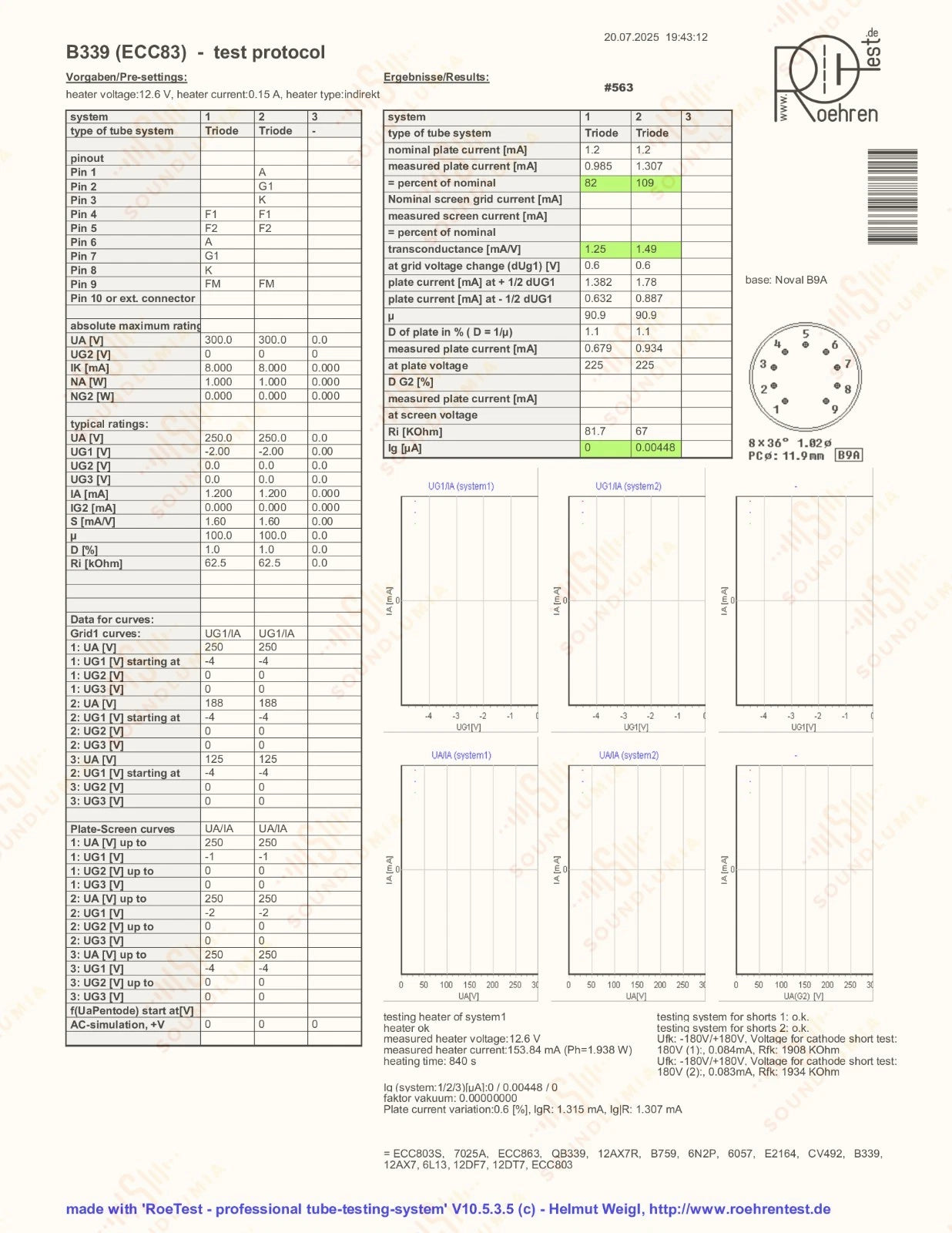 Gemessene Steilheit (GM): 1,49/1,33 mA/V – 93 %/83 % (100 % = 1,6 mA/V)