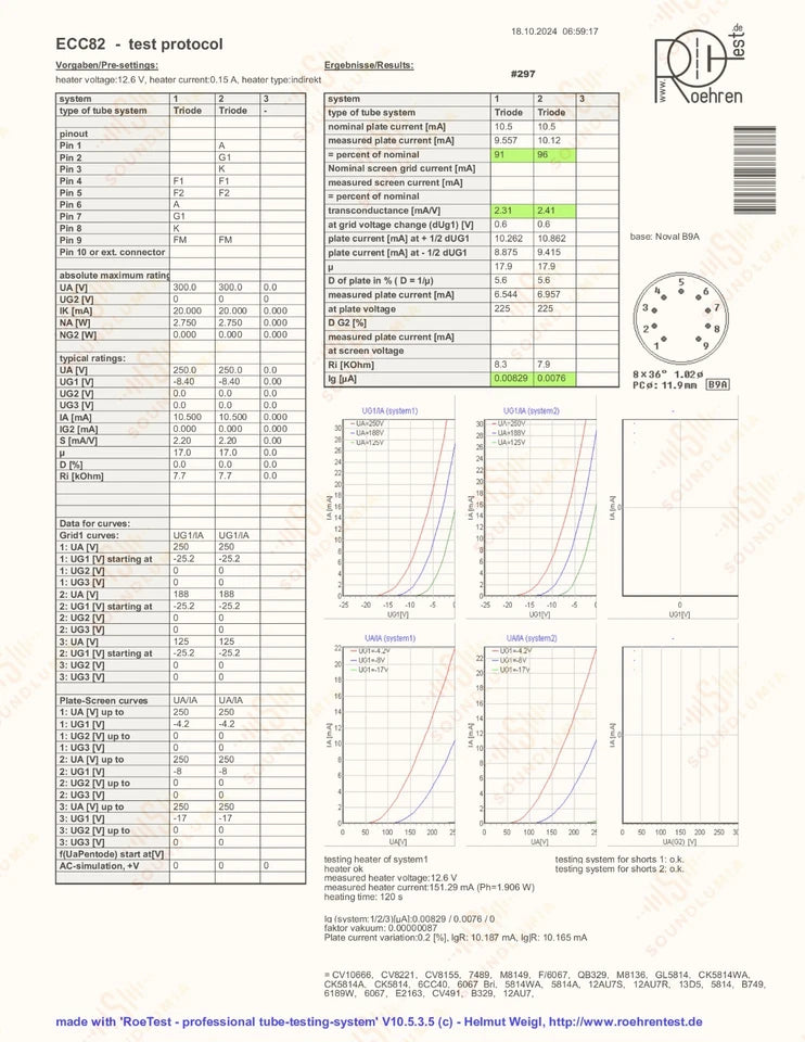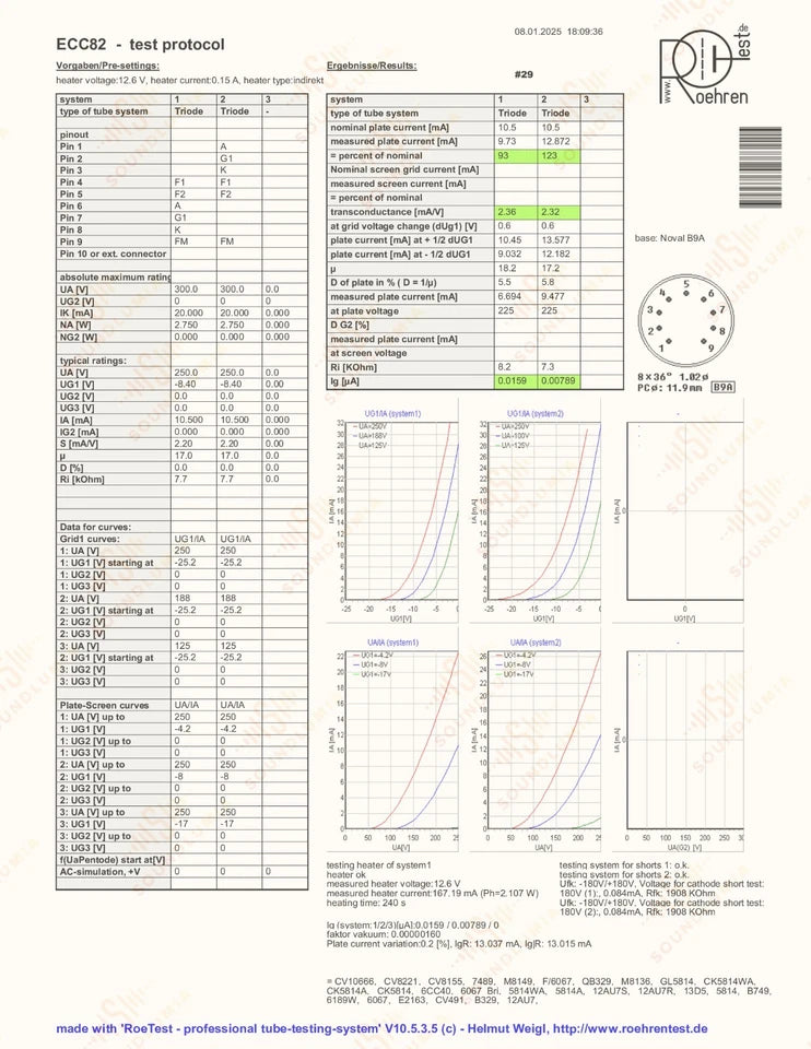 Gemessene Steilheit (GM): 2,3/2,46 mA/V – 105 %/112 % (100 % = 2,20 mA/V)