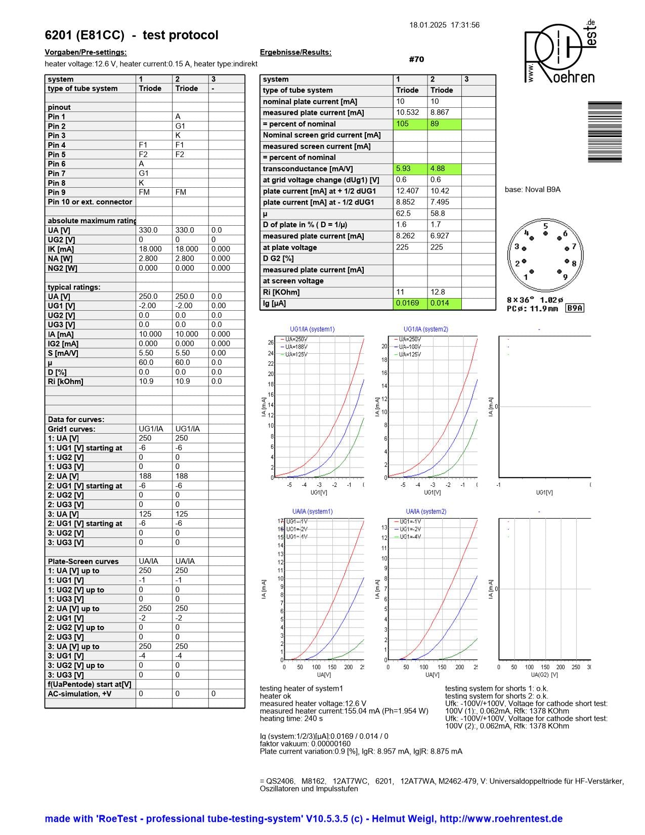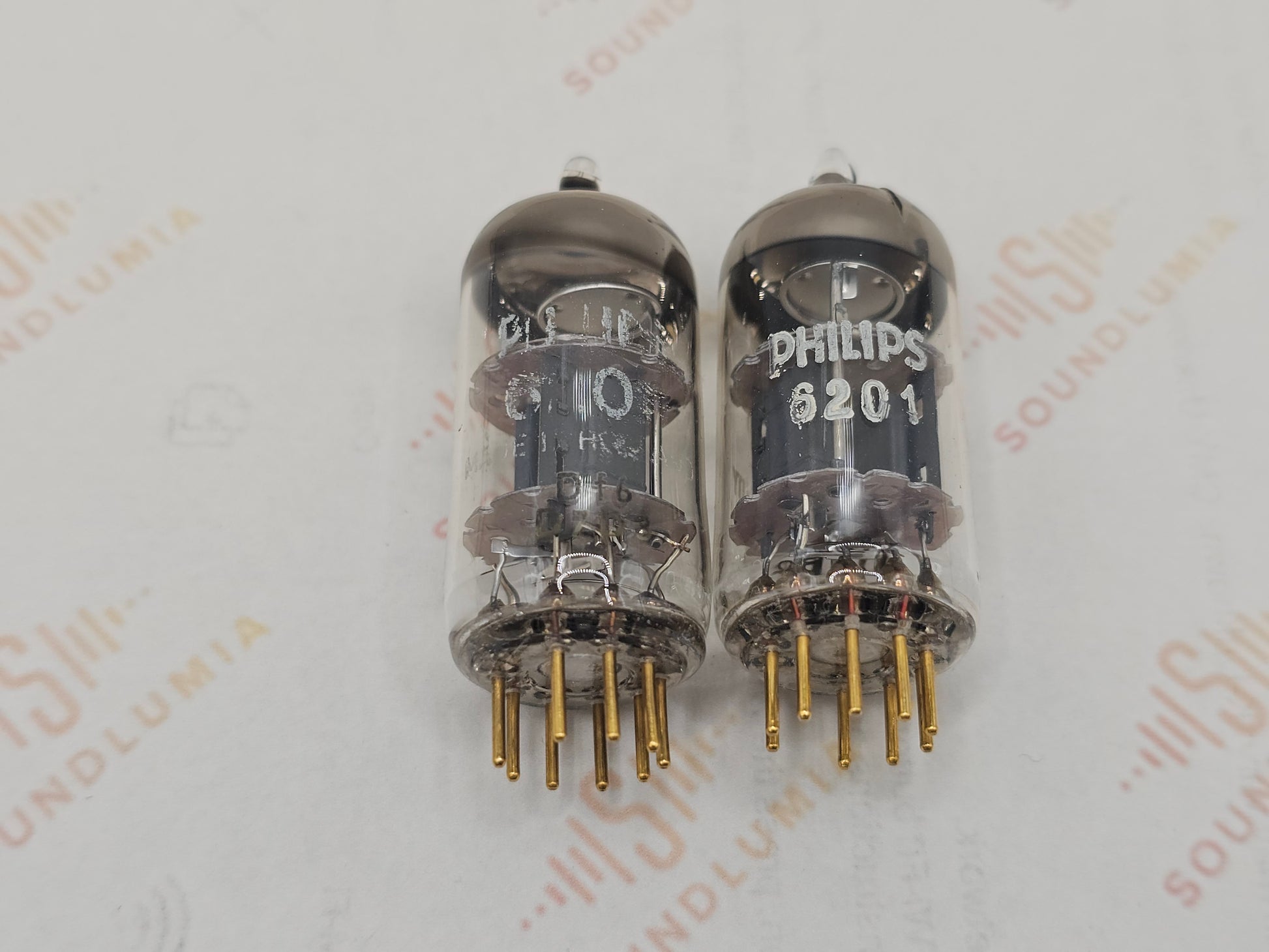 Valvo 6201 O-getter Matched Pair Gold Pins Philips Label- Hamburg 67/69 - Strong