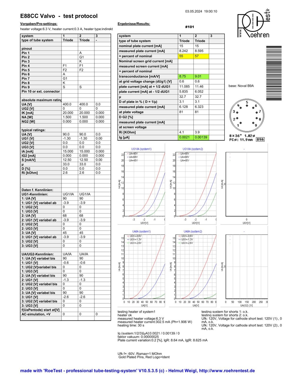 Gemessene Steilheit (GM): 8,75/9,01 mA/V – 70 %/72 % (100 % = 12,50 mA/V)