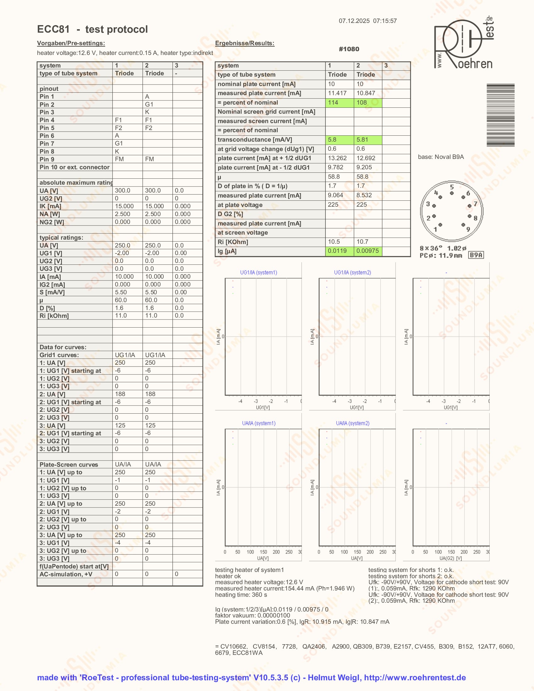 La Radiotechnique ECC81 O-getter - Philips Label Matched Pair Suresnes 1961 - NOS+
