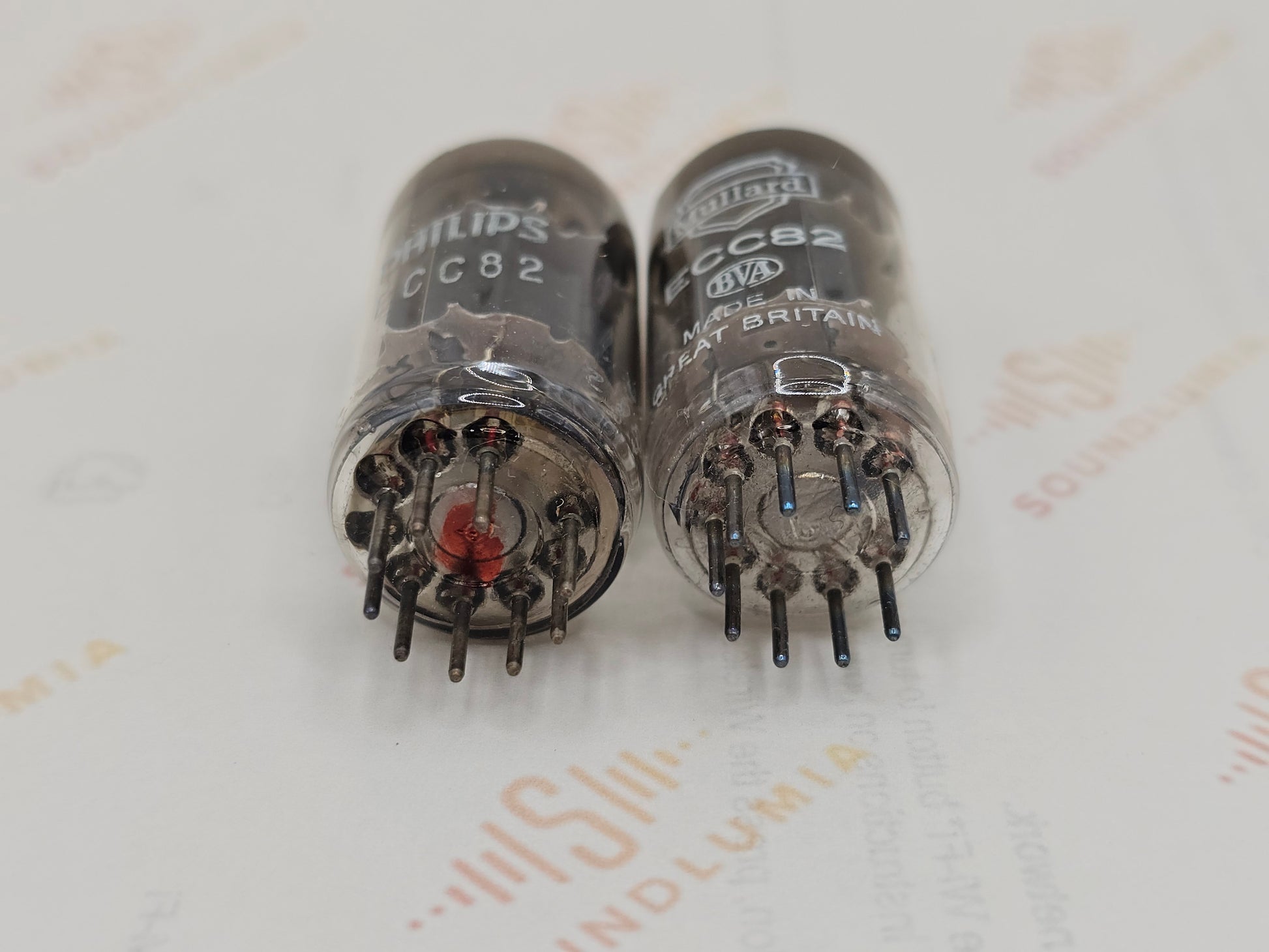 Mullard ECC82 Short Plates O-getter Matched Pair - Blackburn '67/68 Shield/Philips Label - Near NOS