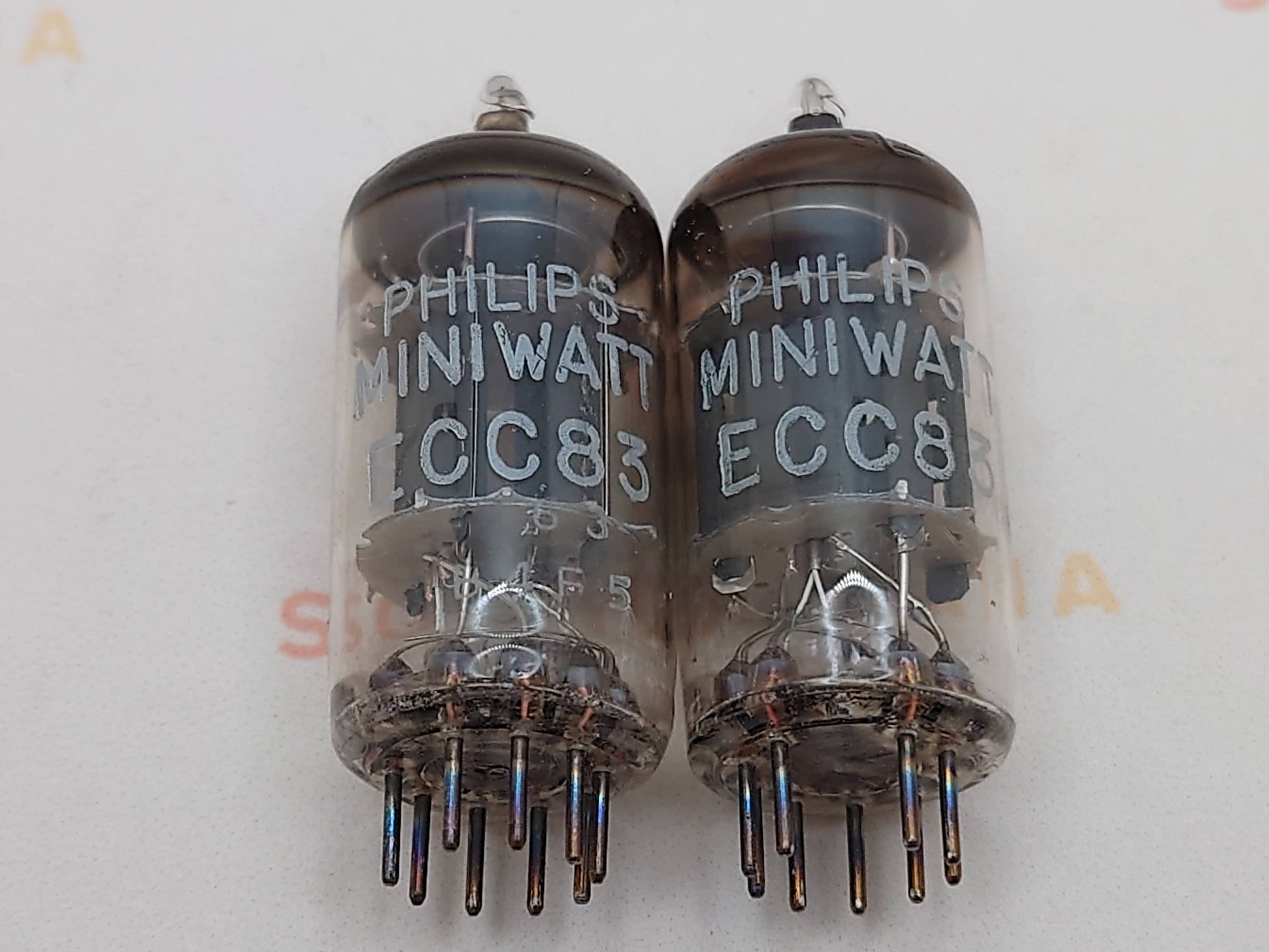 Mullard ECC83 Short Plates O-getter Matched Pair - Philips Label - Blackburn 1959 - Strong