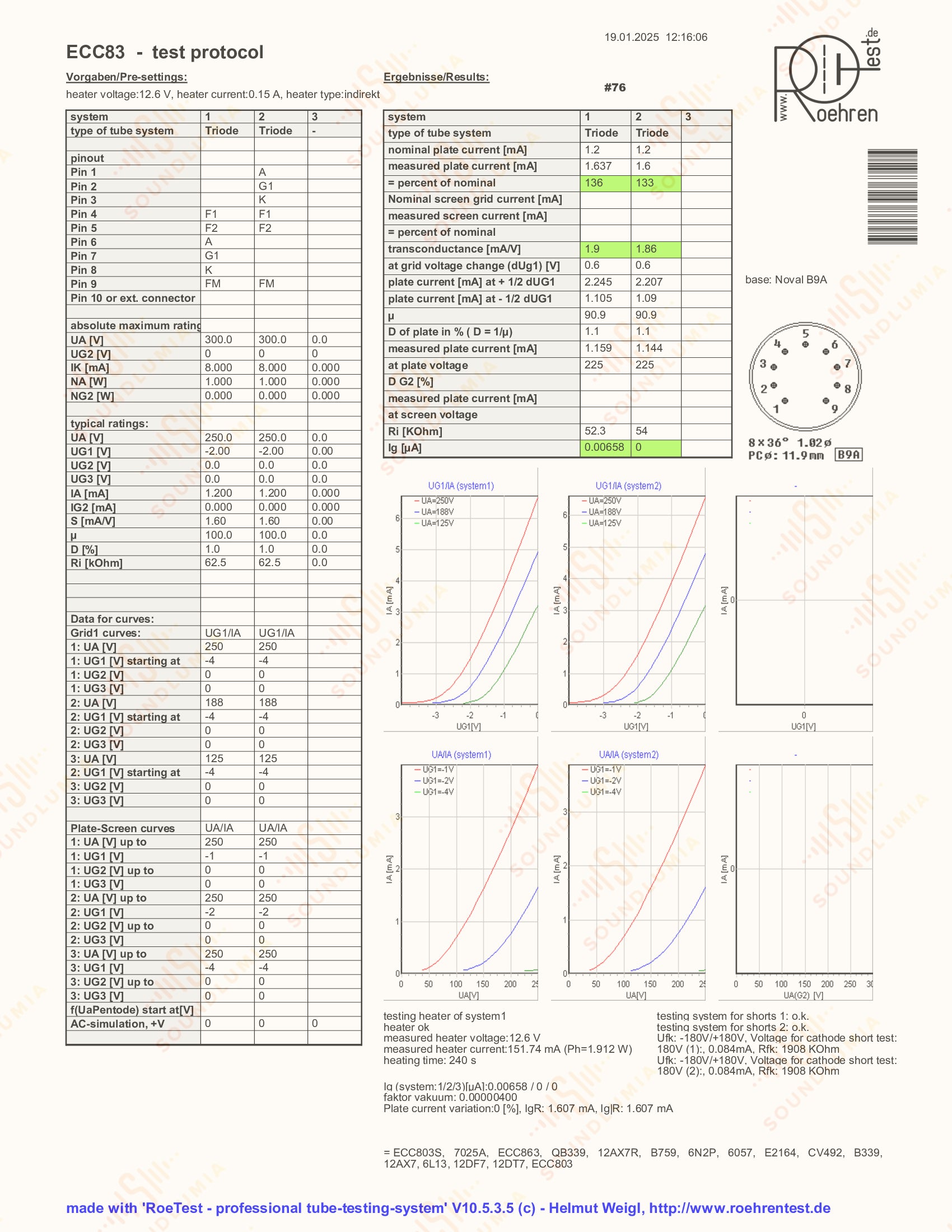 This set was tested and certified by RoeTest V11 Professional Tube Testing System with the following result:
