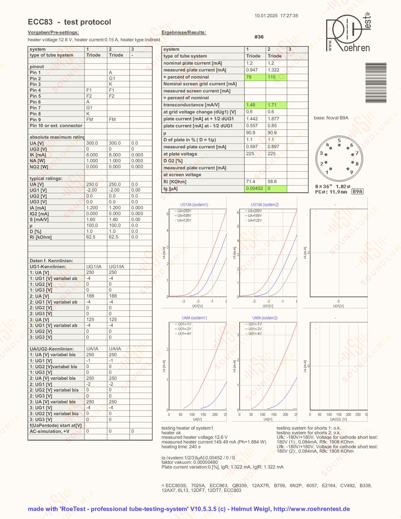 Measured plate current(IA): 1.03/1.36 mA - 86%/113% (100% = 1.2 mA)