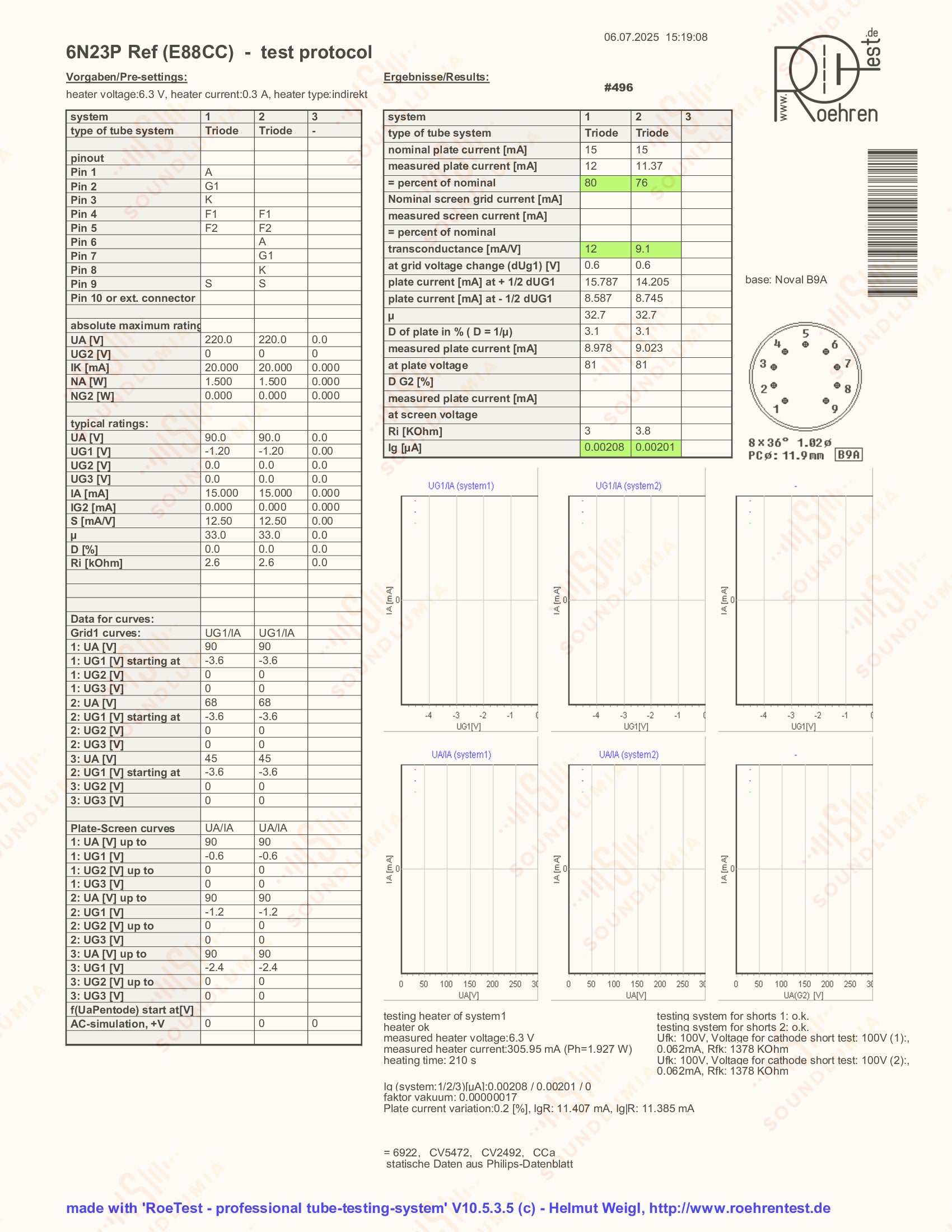 6N23P (Russian name: 6H23) tube is equivalent to European E88CC/6922 tubes. Designed to work in amplifiers and pulse generators, they are guaranteed to deliver high durability (at least 5,000 hours life), reliability and mechanical strength. With premium quality in both build and sound, the Reflektor 6N23P's are the top choice among Soviet-made vintage tubes and also a great alternative to the expensive European E88CC's.