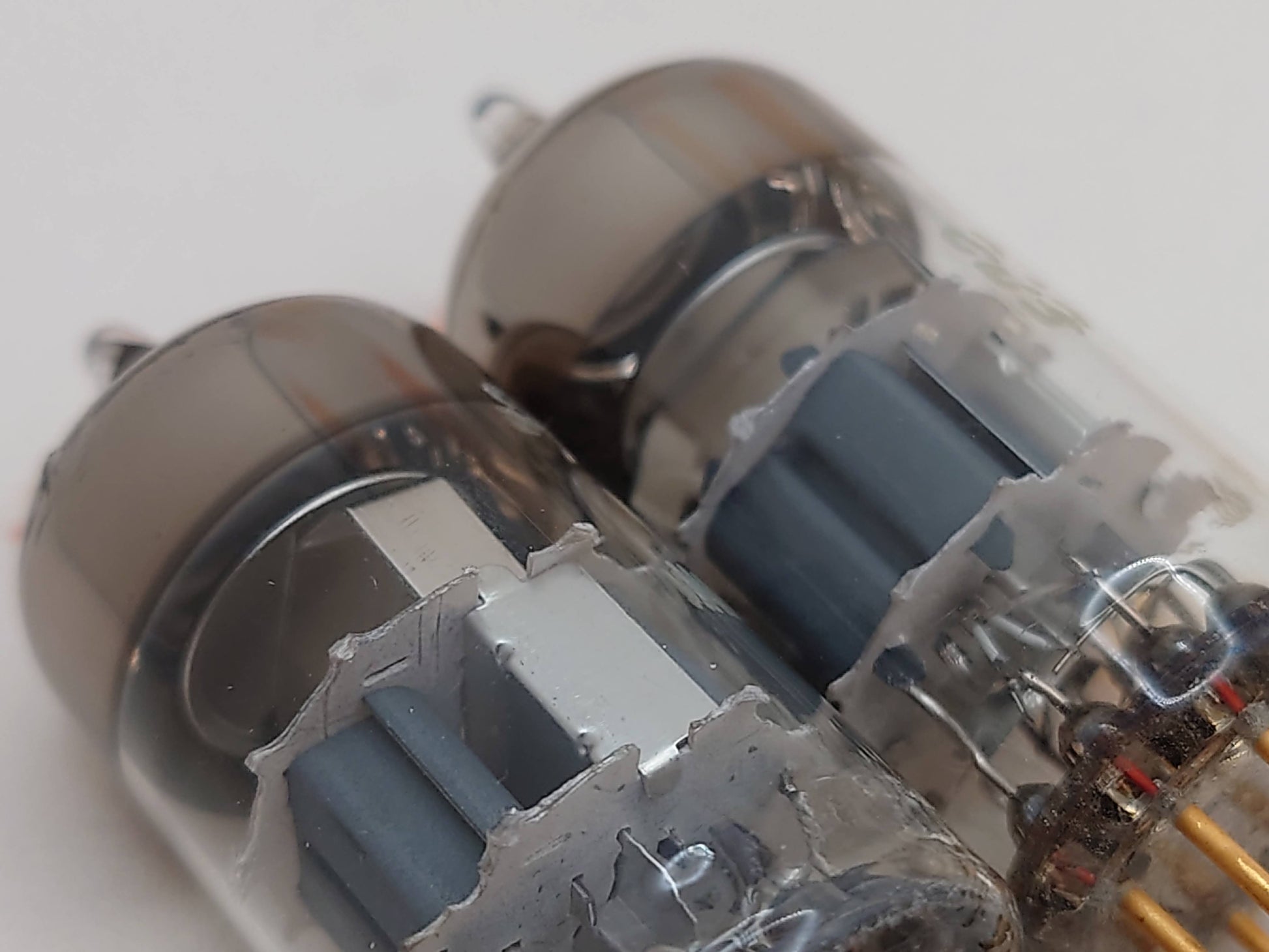 Made for BP (Bundespost - German Federal Post of Berlin) by Siemens, later also approved for military use and various broadcast applications, these tubes carry a long and mysterious history, which might take months to recount. Yet we picky audiophiles approve of their superior qualities...on all accounts: matched triode, low noise screening, minimum 10,000-hour heater life expectancy, carefully controlled frame grid winding and anti-vibration build - this is about as good as it can ever get in the entire vintage tube world! With the unmistakable two-line Munich date code printed on the metal tag, this pair also comes with the famous A-frame construction, the most sought-after "audiophile version" of CCa!