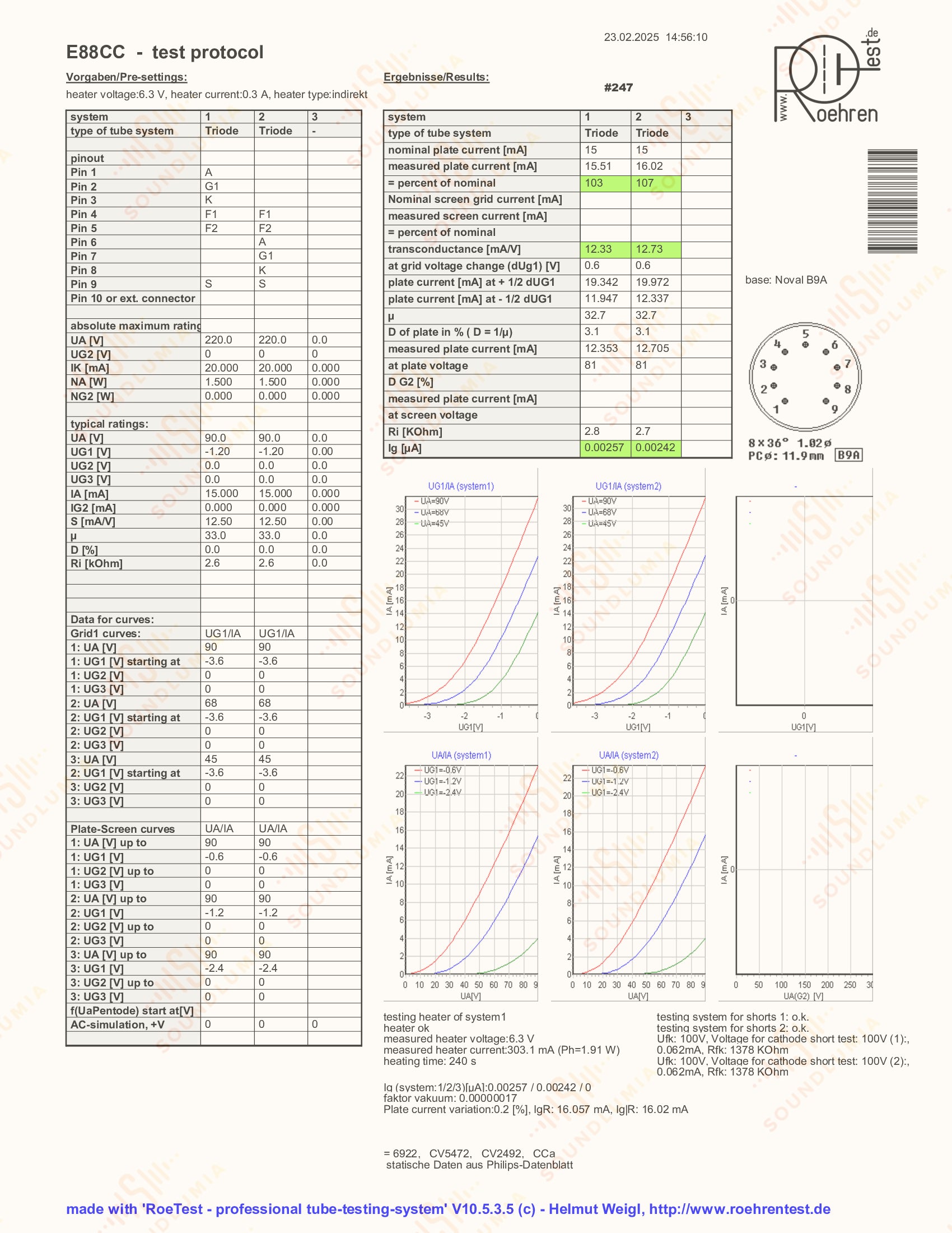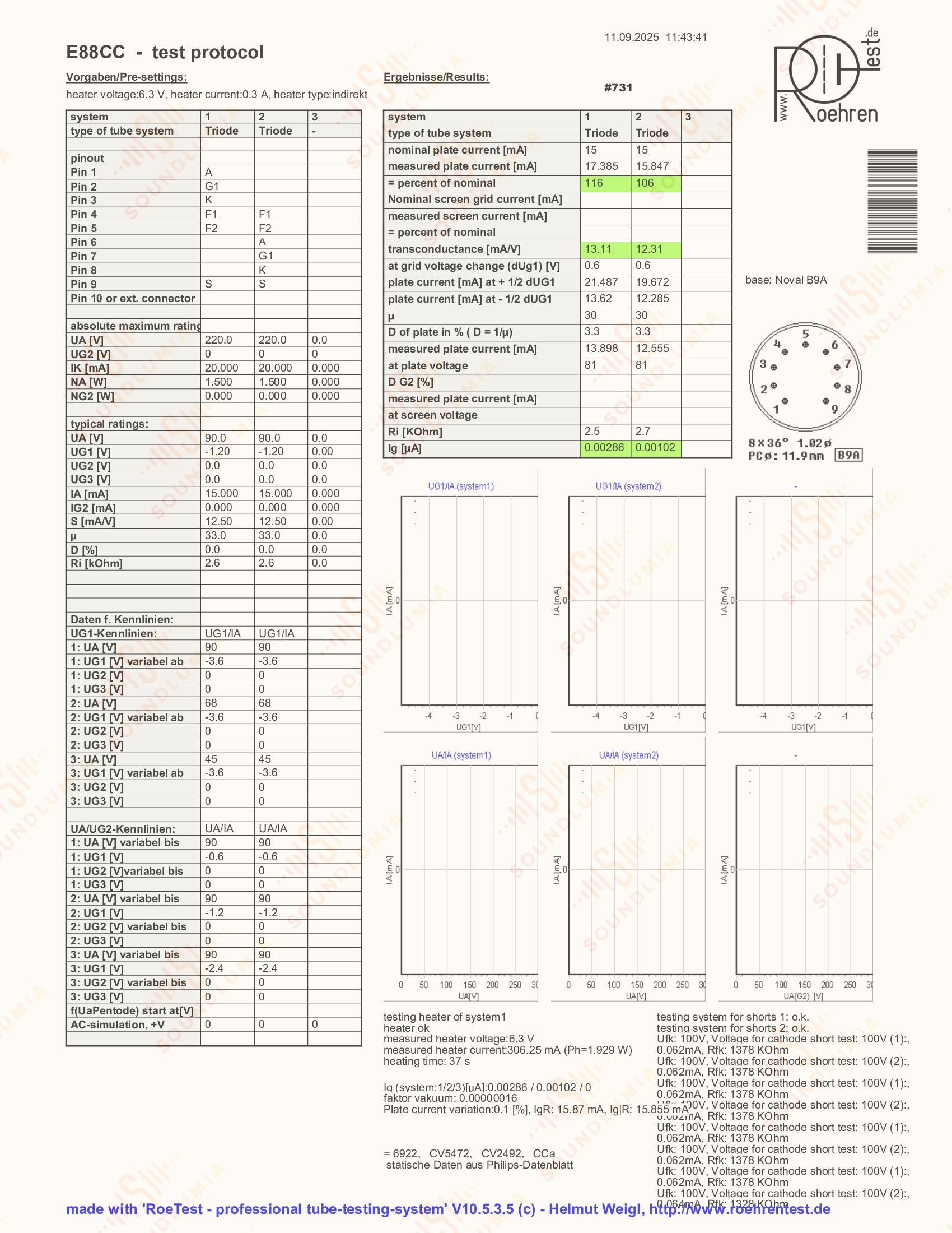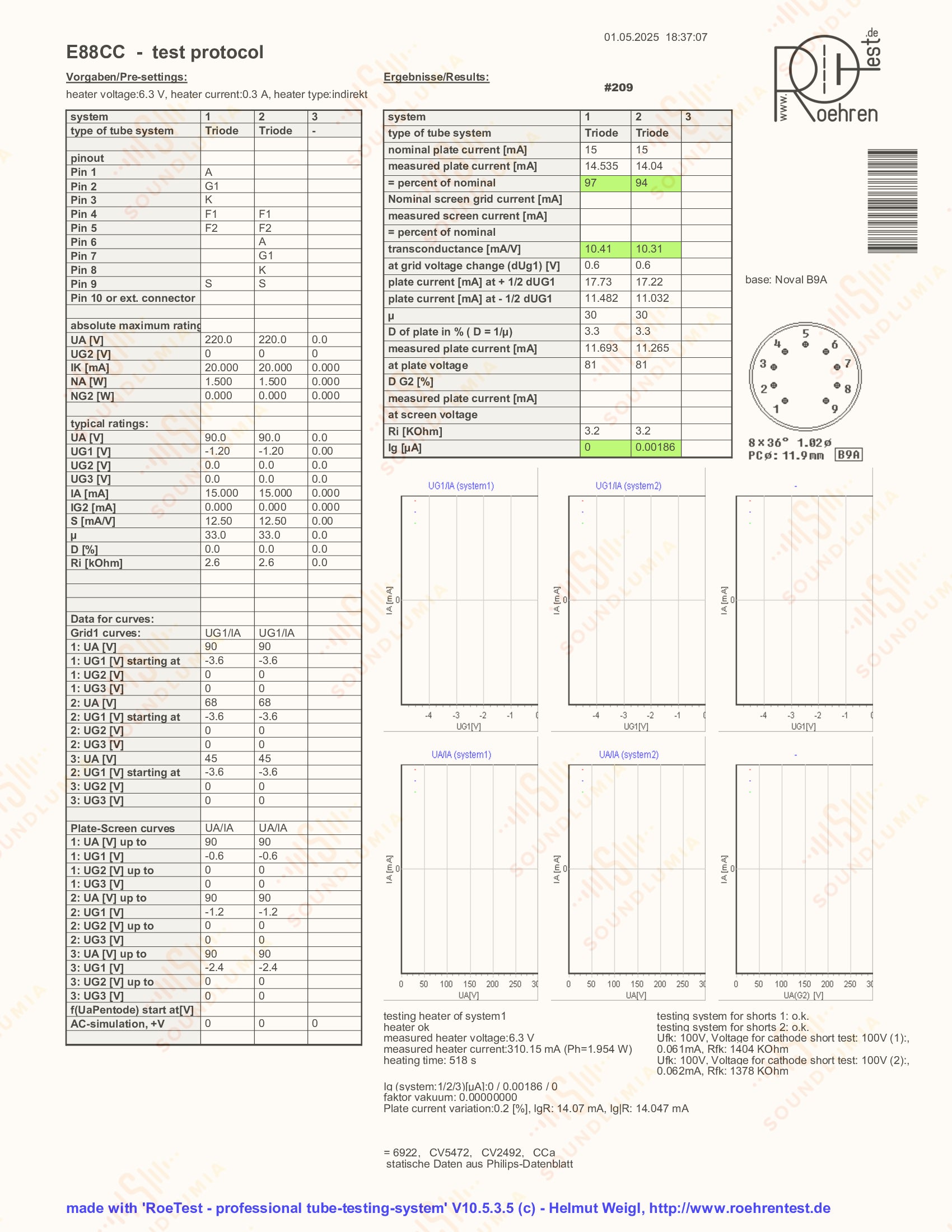 The airy and transparent sound produced by these vintage Siemens tubes has been unrivaled even to this day. The magically extended yet never tizzy highs, coupled with the slightly focused upper mid-range, deliver a clear presentation of the entire frequency spectrum, completed by the precise and deep controlled bass. And the most defining sound characteristic of Siemens E88CC tubes is their ability to retrieve the deepest levels of detail in sound, and these hidden sonic layers can go a long way to revealing the subtle ambient clues that help complete building a truly 3D holographic presentation. While as quiet and analytical as the best Telefunken E88CC tubes, Siemens E88CC's produce a warmer, smoother and more musical sound. To see how they compare to each other, please also see Soundlumia's exclusive Telefunken E88CC listings.