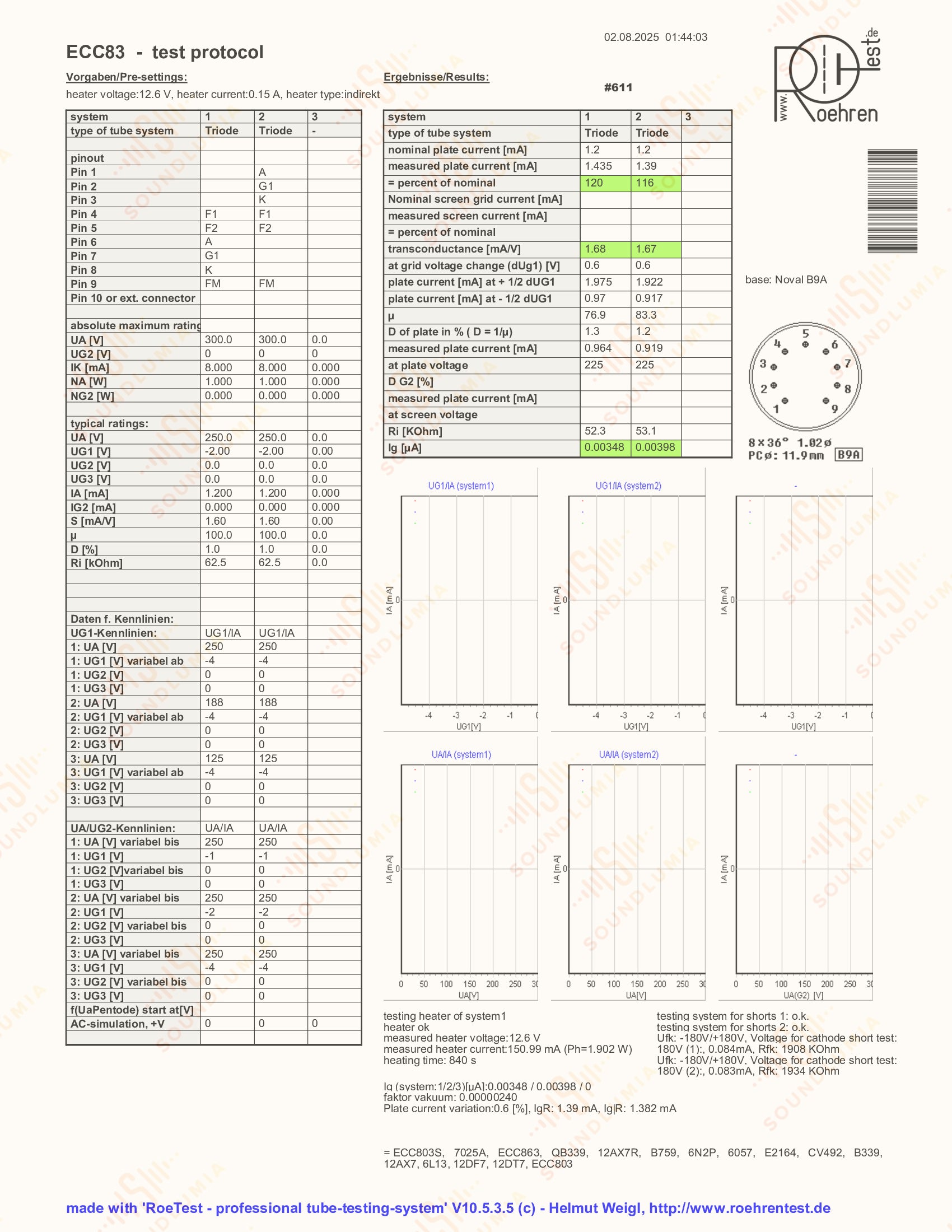 2x Telefunken ECC83 Smooth Plates ◇ Base - Berlin 1964 - Same code - NOS
