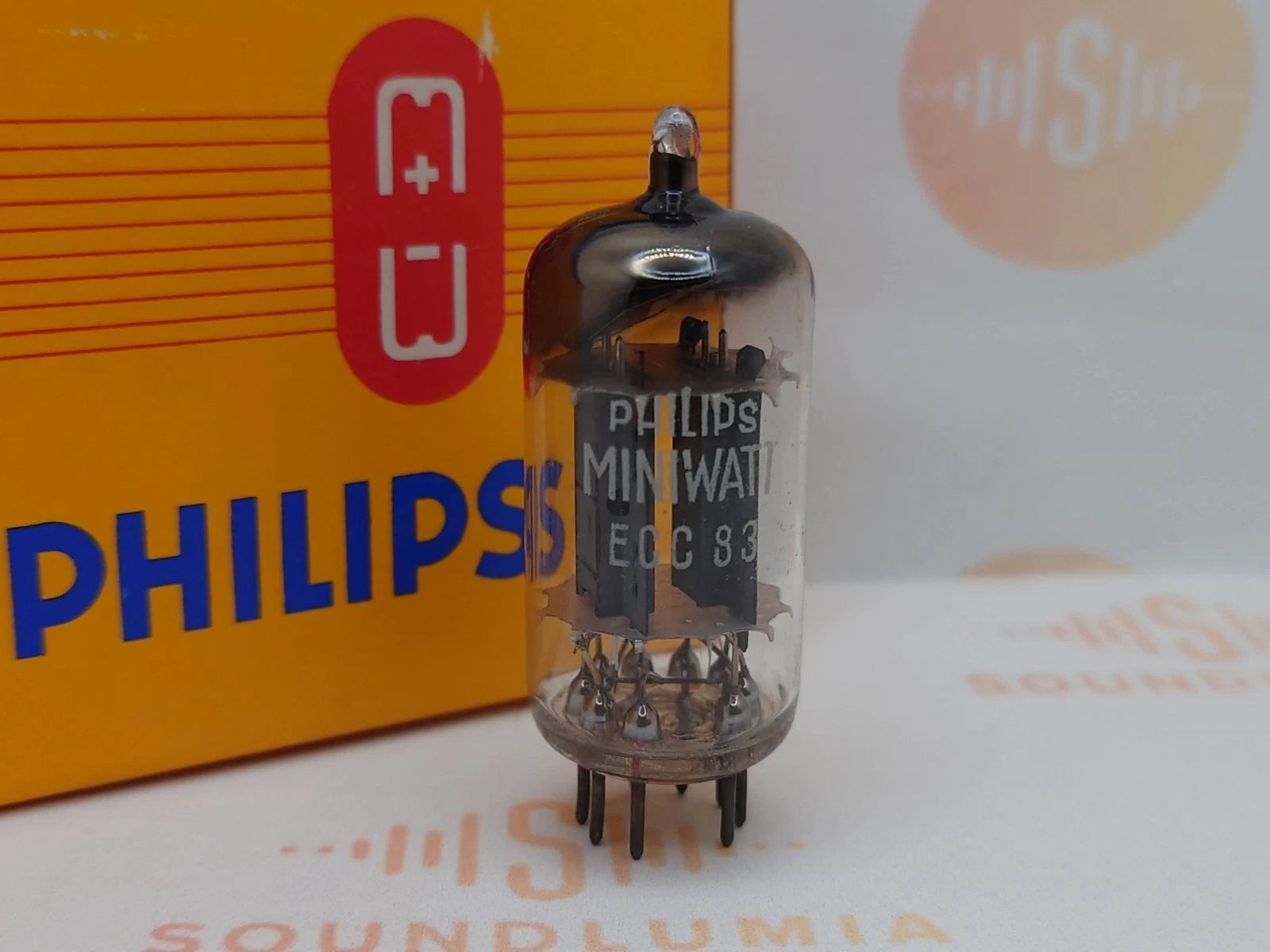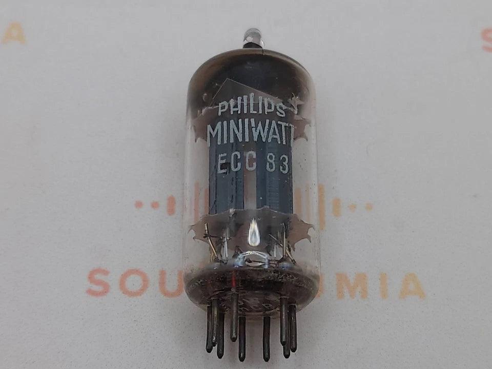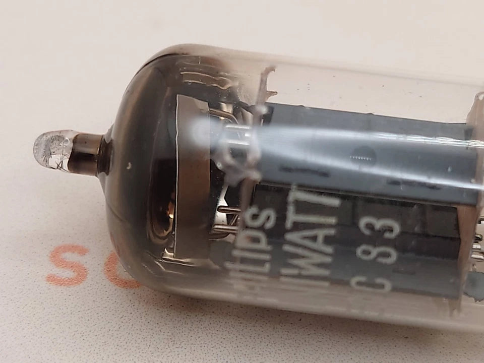 1x Valvo ECC83 Long Plates 45° D-Foil Getter - Hamburg '55 DW mCP - Philips Label