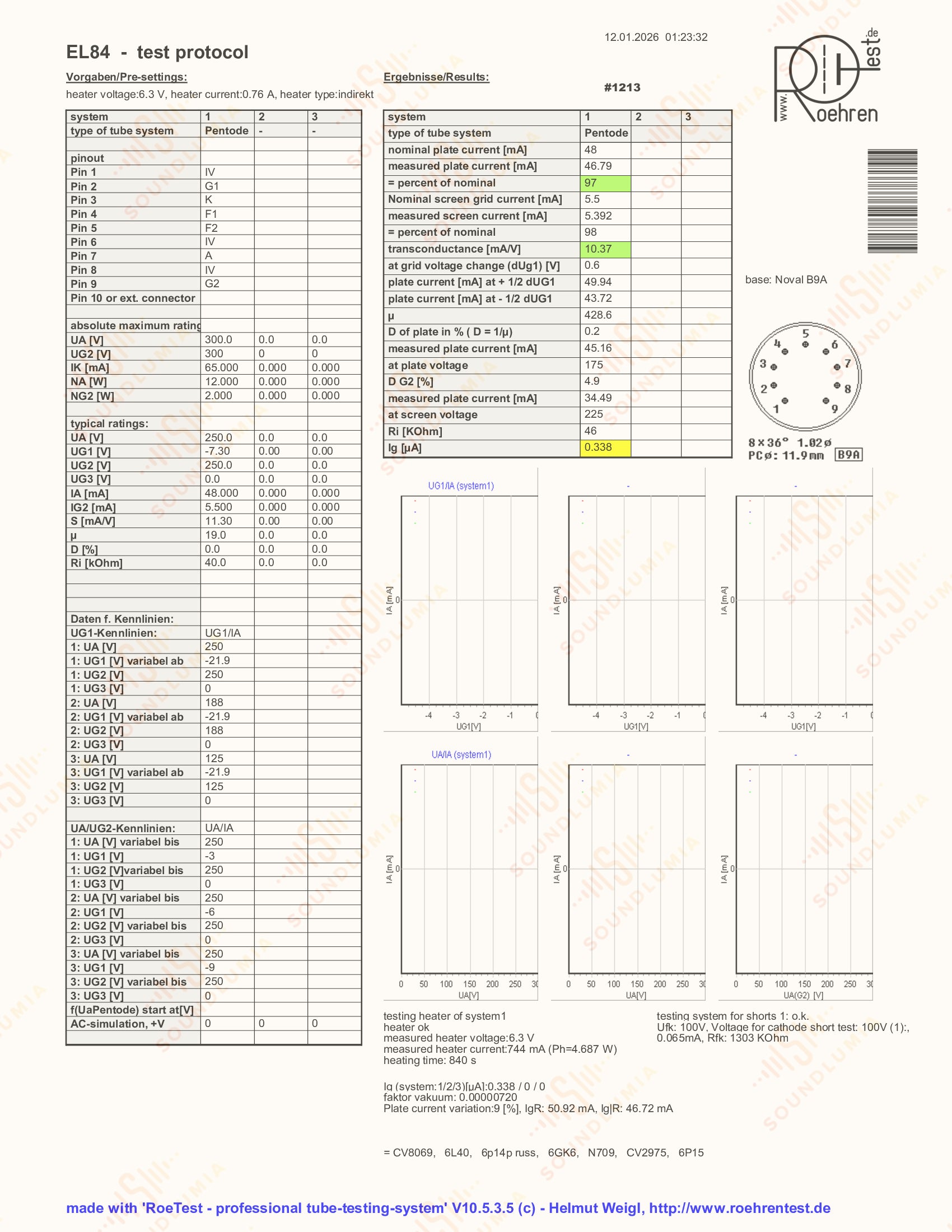 Telefunken EL84 6BQ5 ◇底部匹配对 -柏林 1959 - 测试强劲